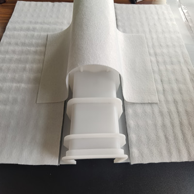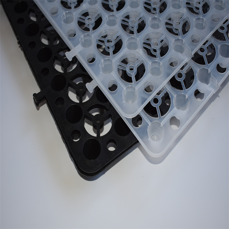圓錐突臺(tái)的頂面膠接一層過(guò)濾土工布,以阻止泥土微粒通過(guò),從而避免排水通道阻塞使孔道排水順暢?!ぁぁ?/p>